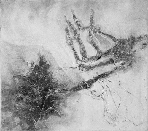 This unfinished print (to the left) represents my approach to this theme with the intaglio process.